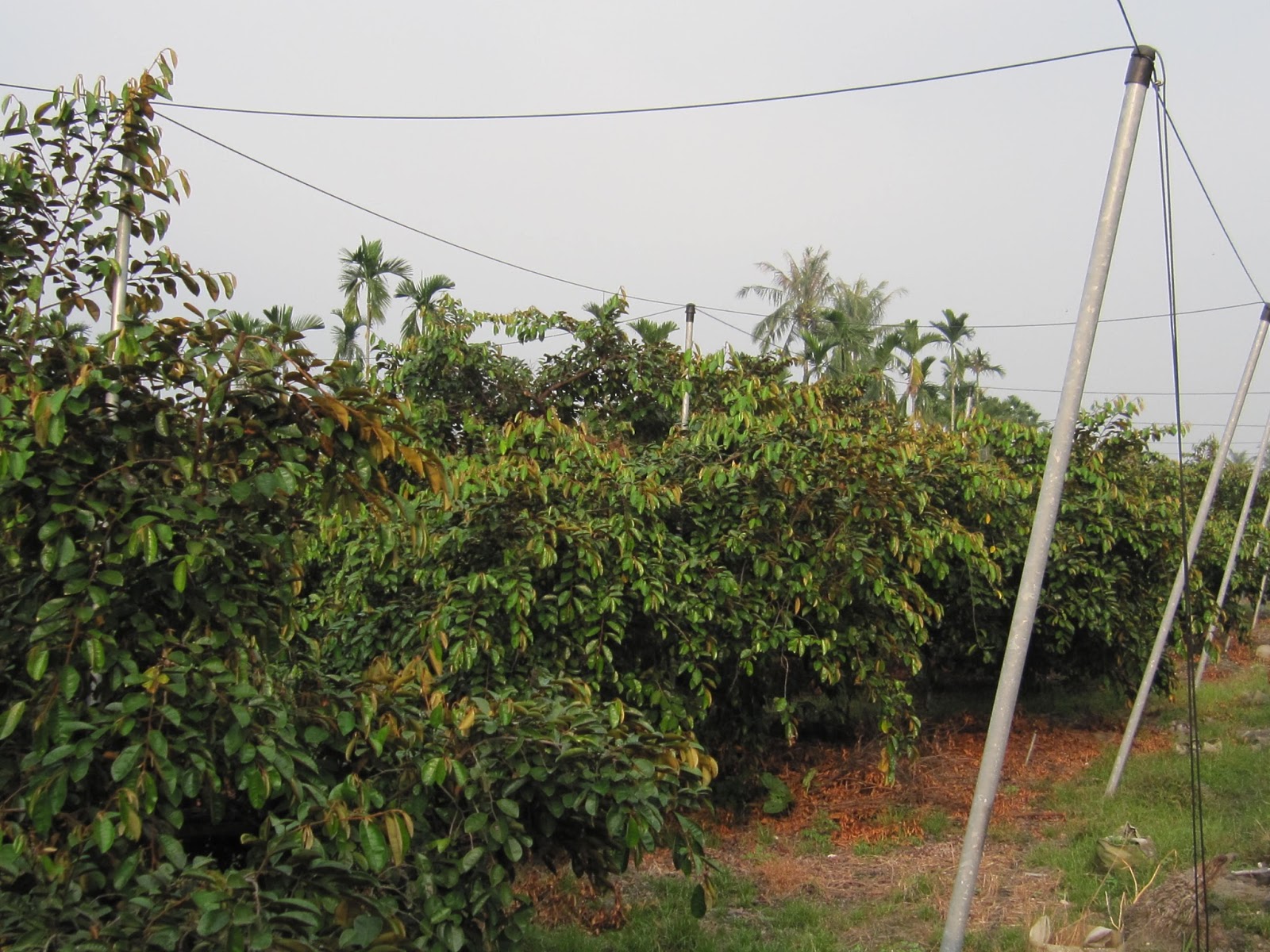Chrysophyllum cainito o fruto de leche (niúnǎi guǒ; 牛奶果), como se le conoce acá en Taiwán, será la primera o una de las primeras plantaciones. La altura y ramificación de los árboles, el distanciamiento y el cultivo bajo net rompió con el esquema que teníamos, ya que en nuestro país este árbol es un gigante que mide hasta 30 metros. Por cierto, el precio por kilo de frutos de caimito es NT$130 (US$1 = 32.89 NT$).