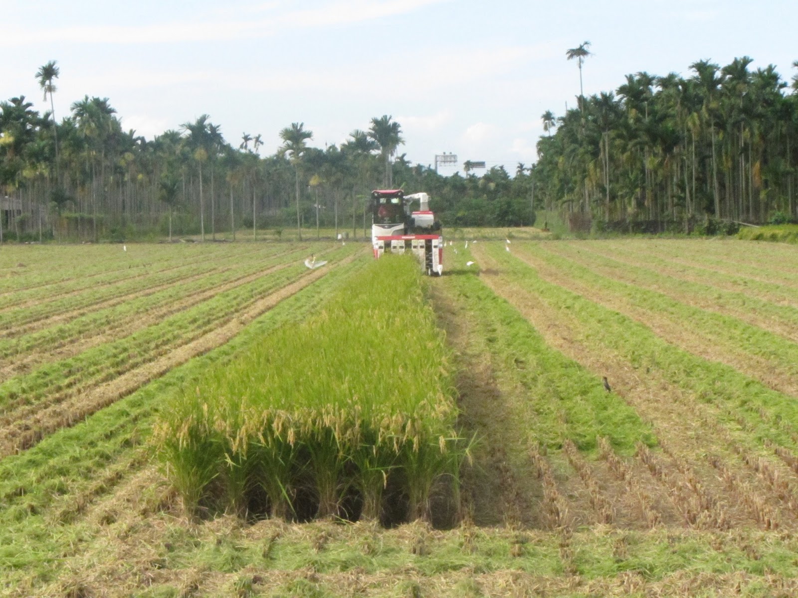 A las 7:24 A.M. tomamos la primera fotografía de esta cosecha; luego, a las 8:15 la maquina salió del terreno. Desconocemos el área exacta de la parcela; pero, por las dimensiones que observamos, nos atreveríamos a especular que se aproxima a 3/4 de hectárea. Entonces, si la actividad inicio a las 7:00, eso nos permite estimar que en 1 hora 40 minutos es factible cosechar 10,000 m2 — con este modelo de cosechadora.